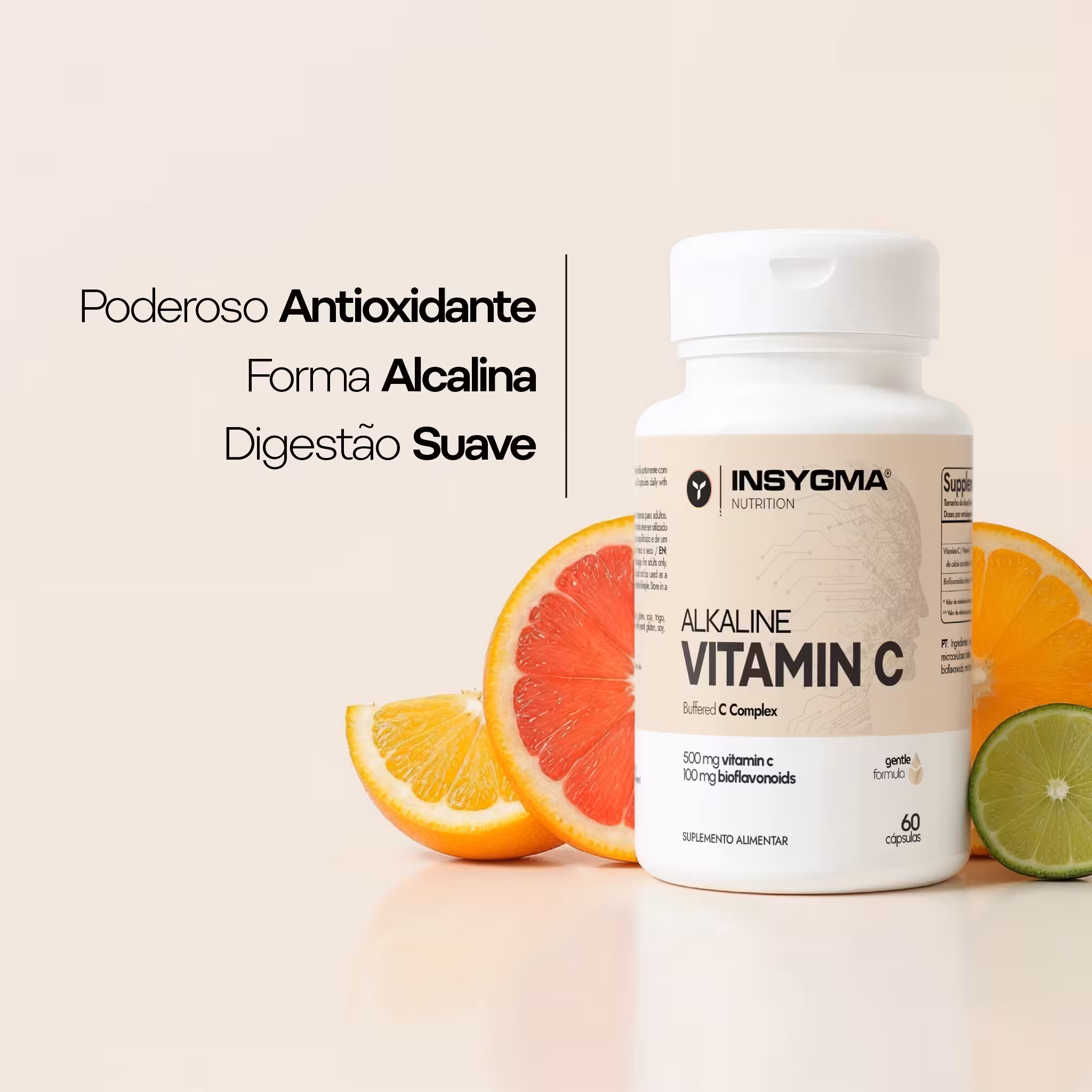 Cada cápsula fornece 500 mg de Calcium Ascorbate, forma suave para o estômago, e 100 mg de Bioflavonoides.